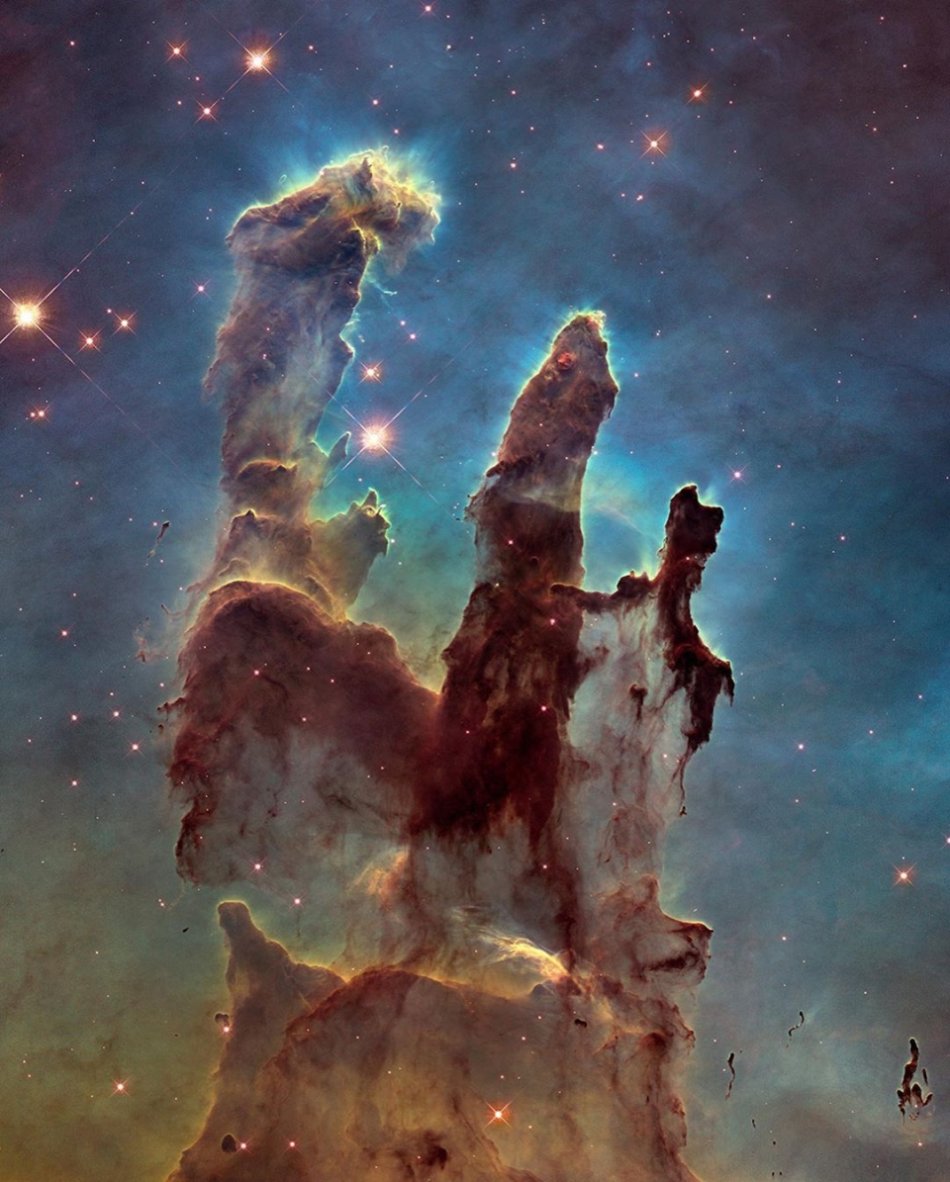 sights: the Eagle Nebula’s Pillars of Creation. Here, the pillars are seen in infrared light,