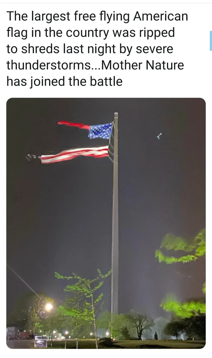 The largest free flying American flag in the country was ripped to shreds by severe thunderstorms(Picture)