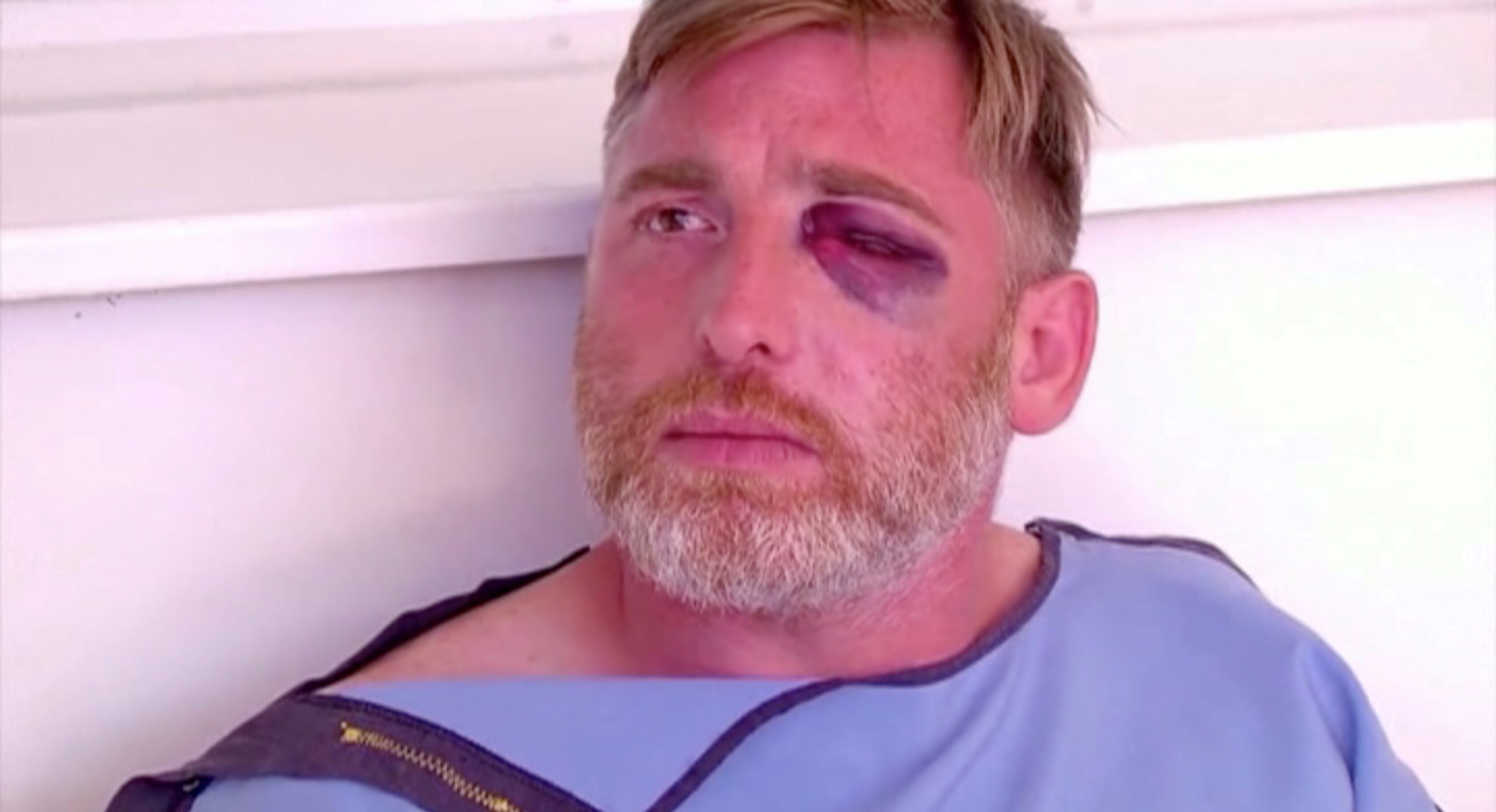 Local TV channels later showed him with bruises on his face and blood on the floor around him.